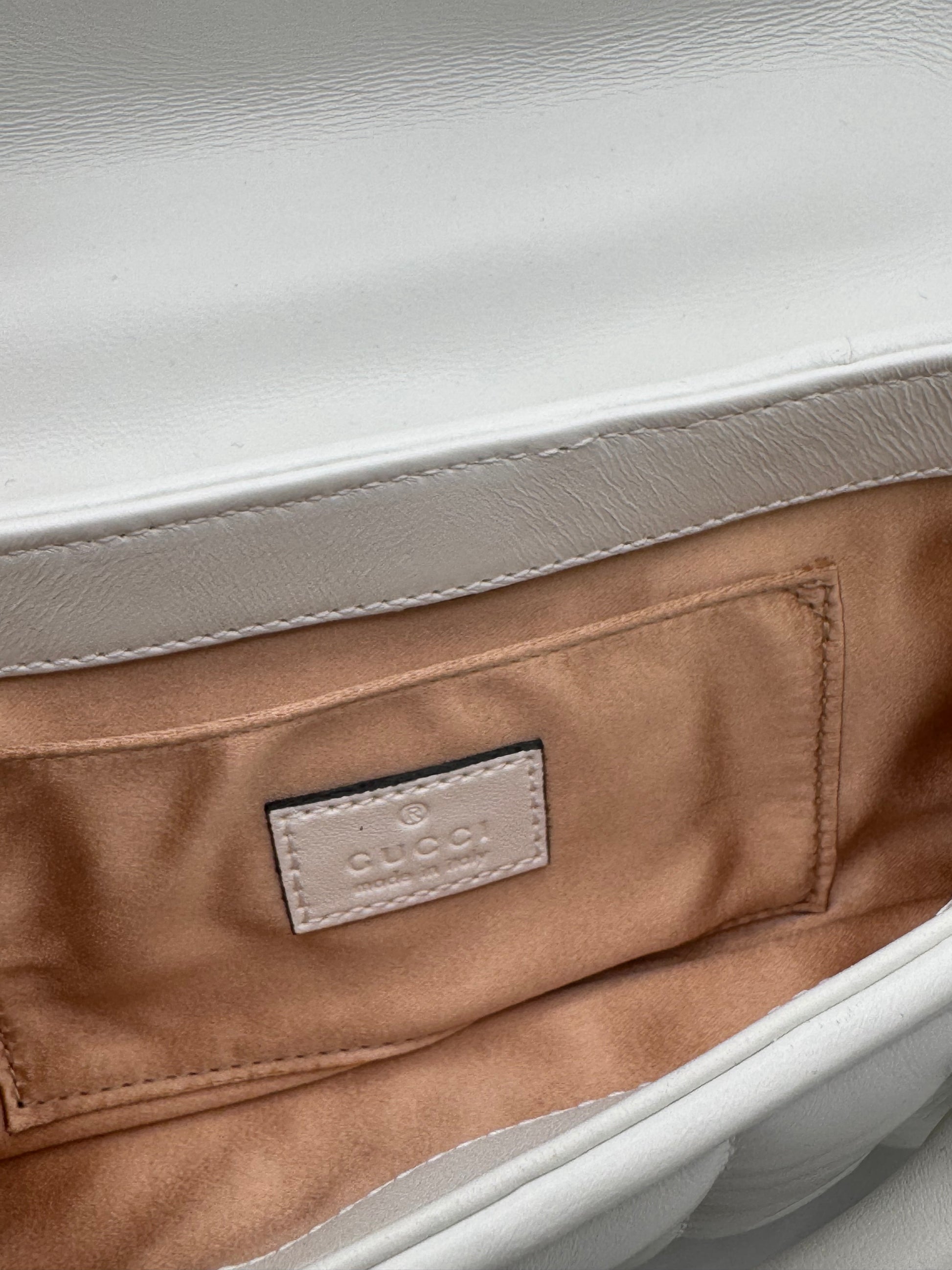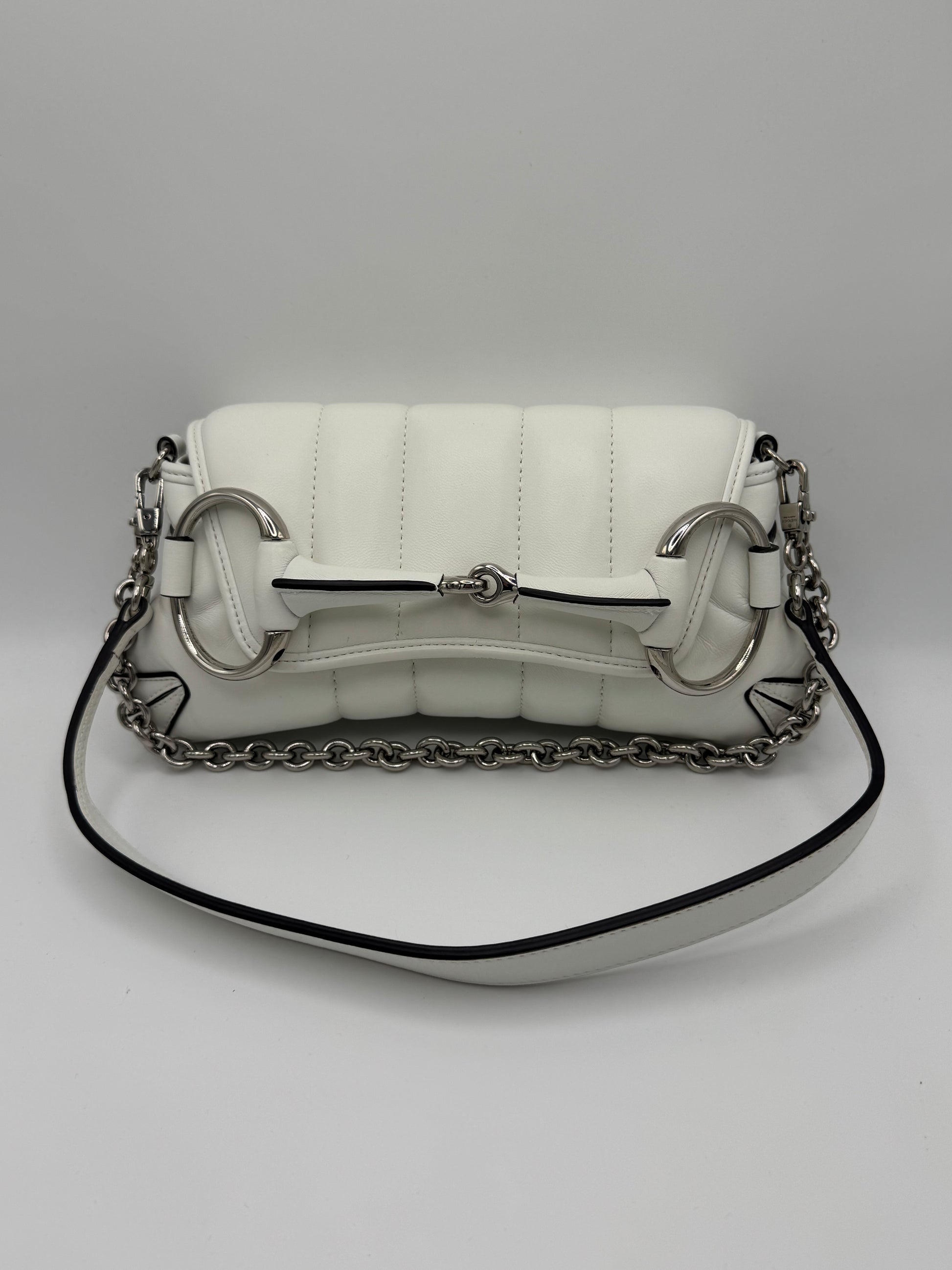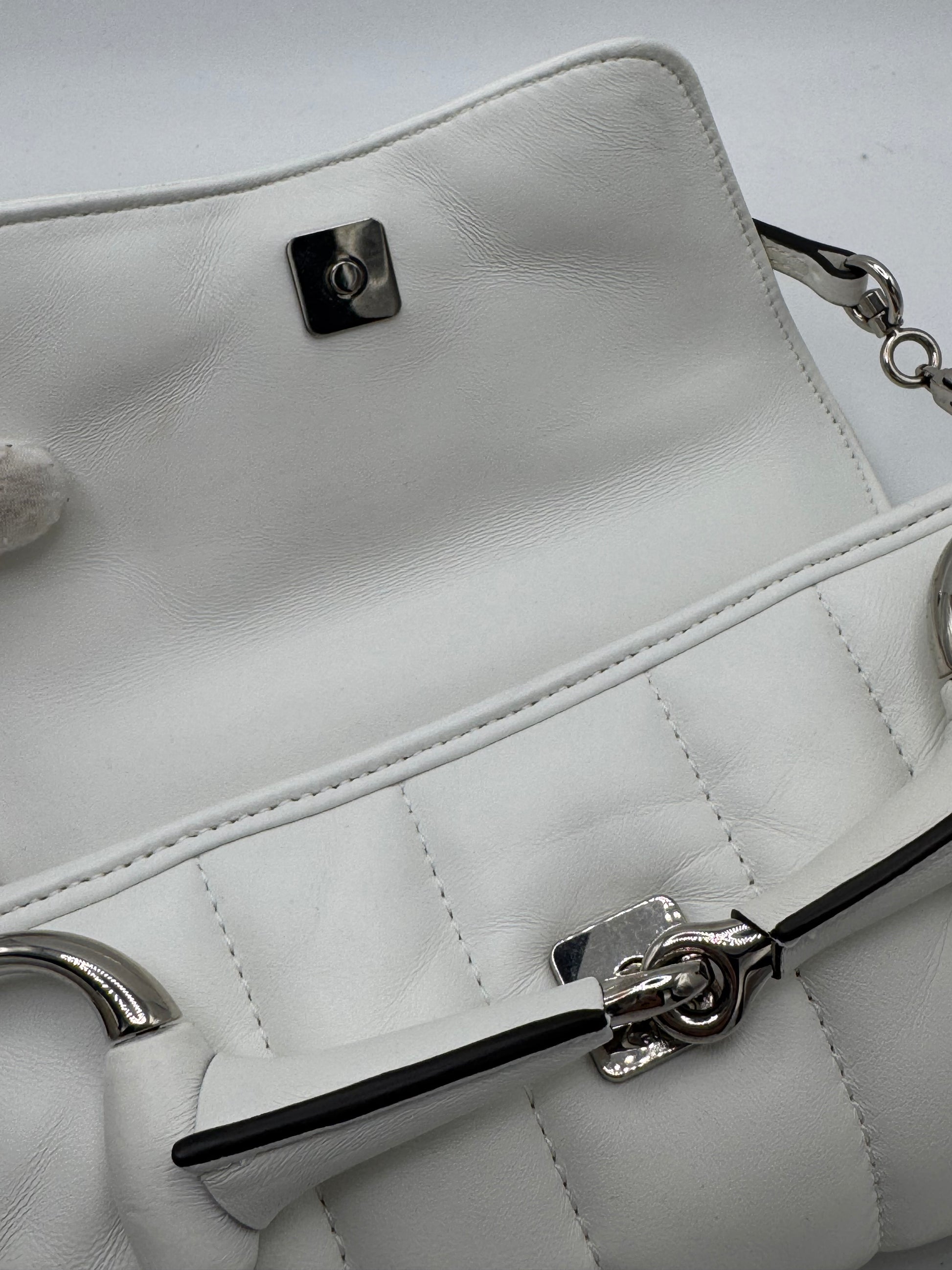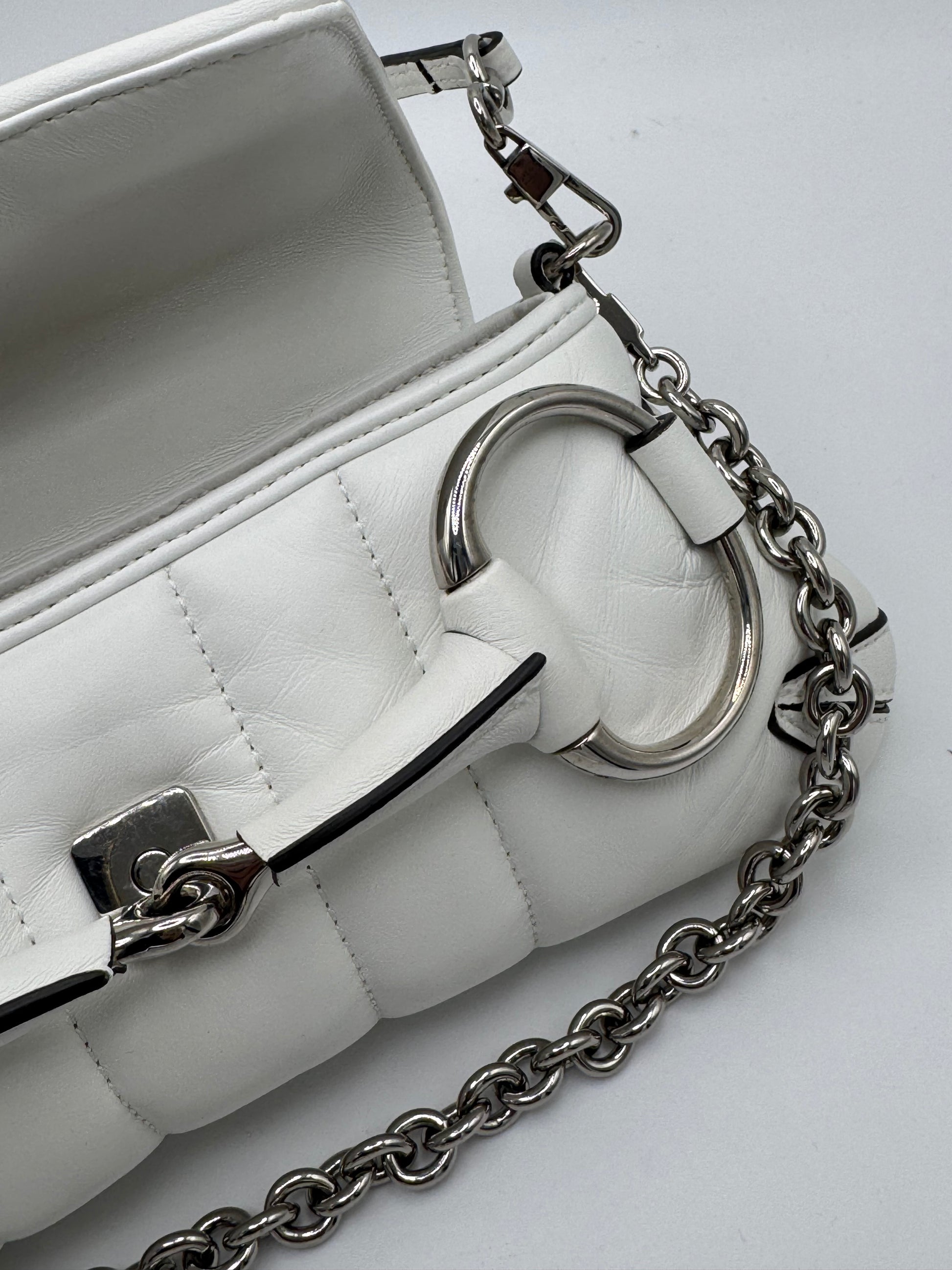 Gucci Nappa Vertical Matelasse Small Maxi Horsebit Chain Shoulder Bag Great White