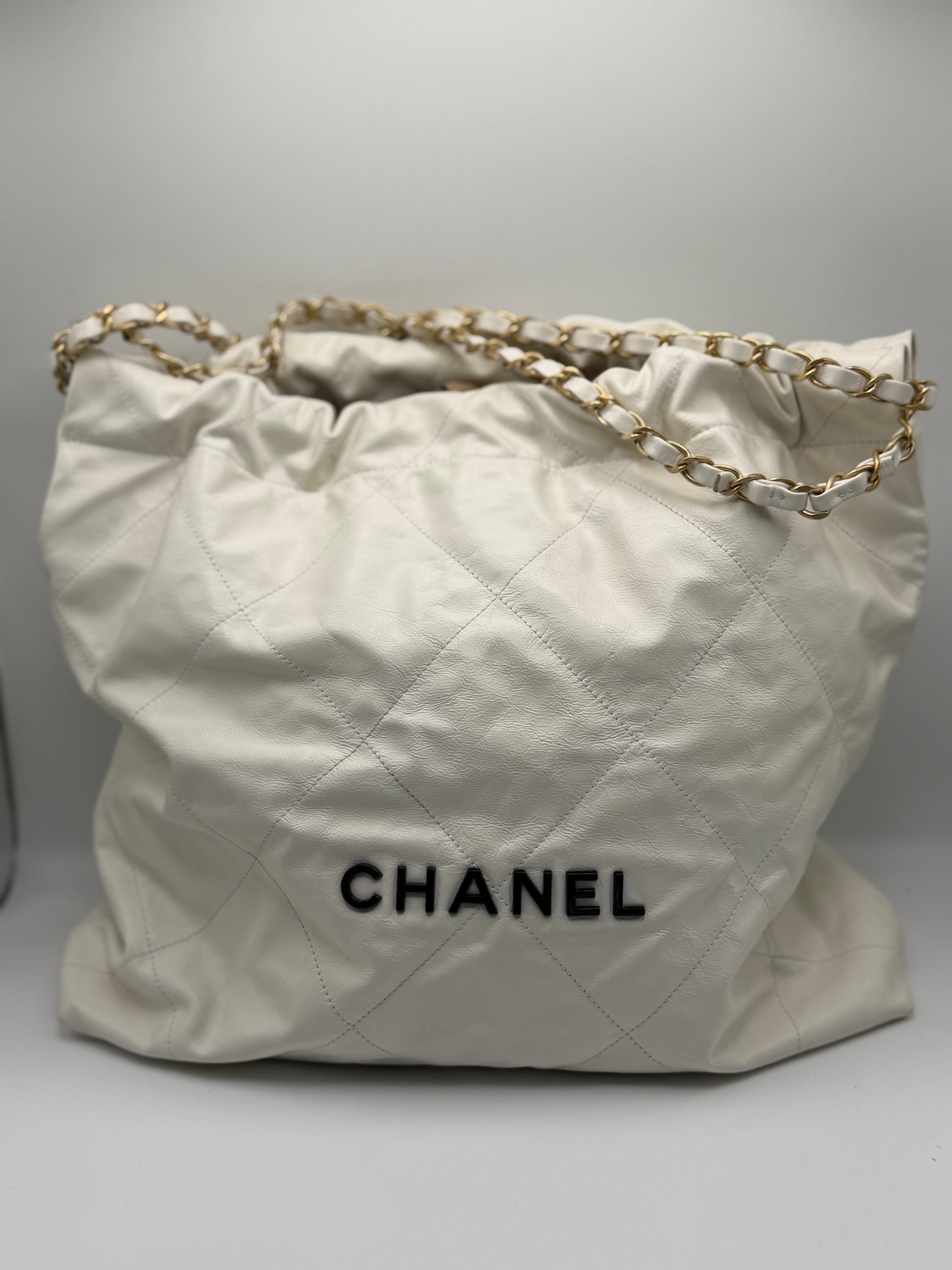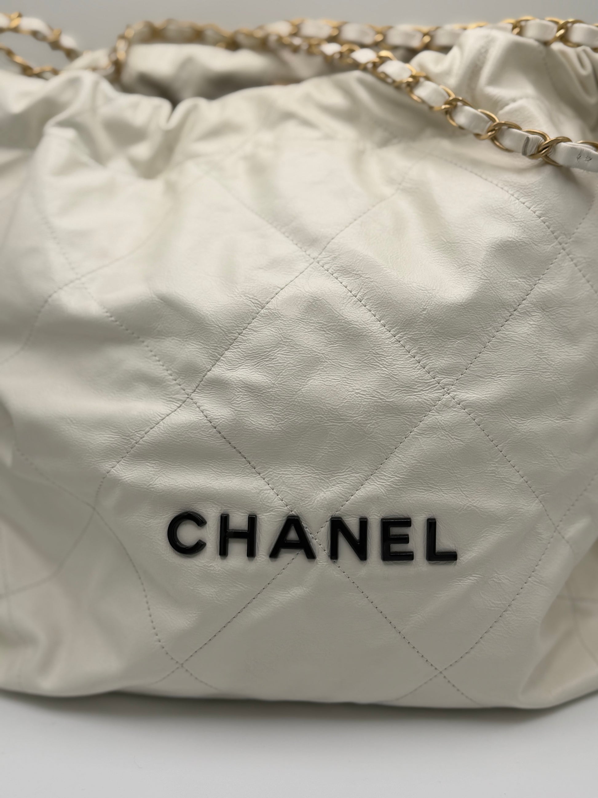 Chanel Shiny Calfskin Quilted Small Chanel 22 White