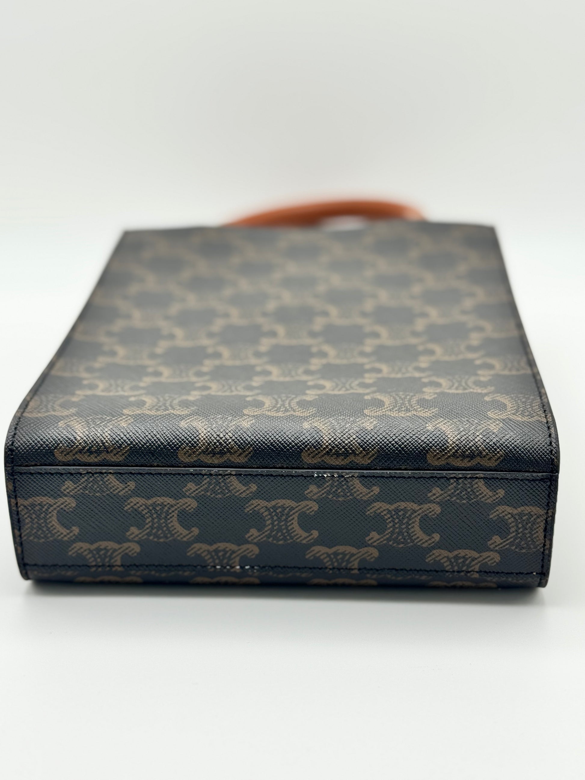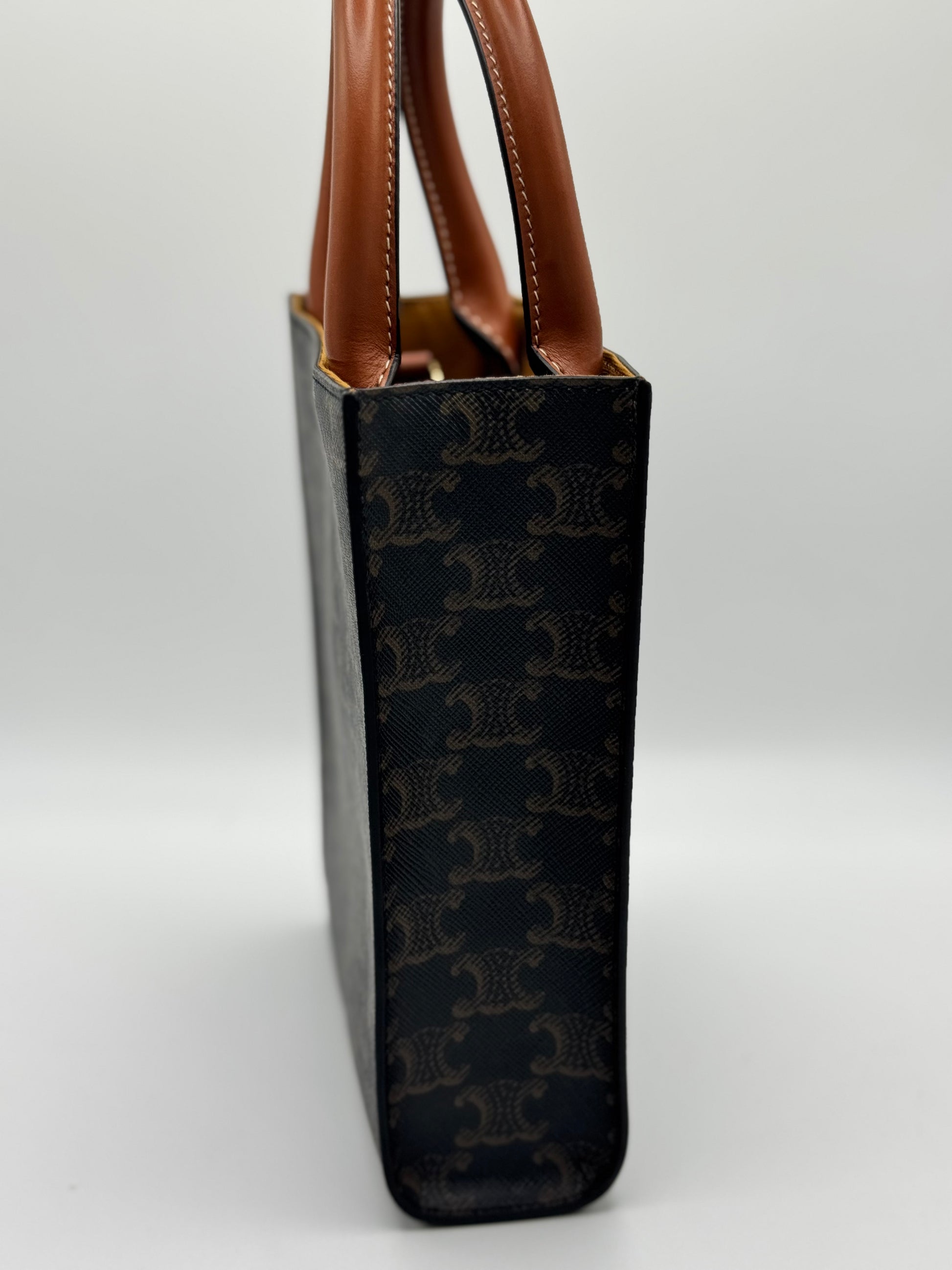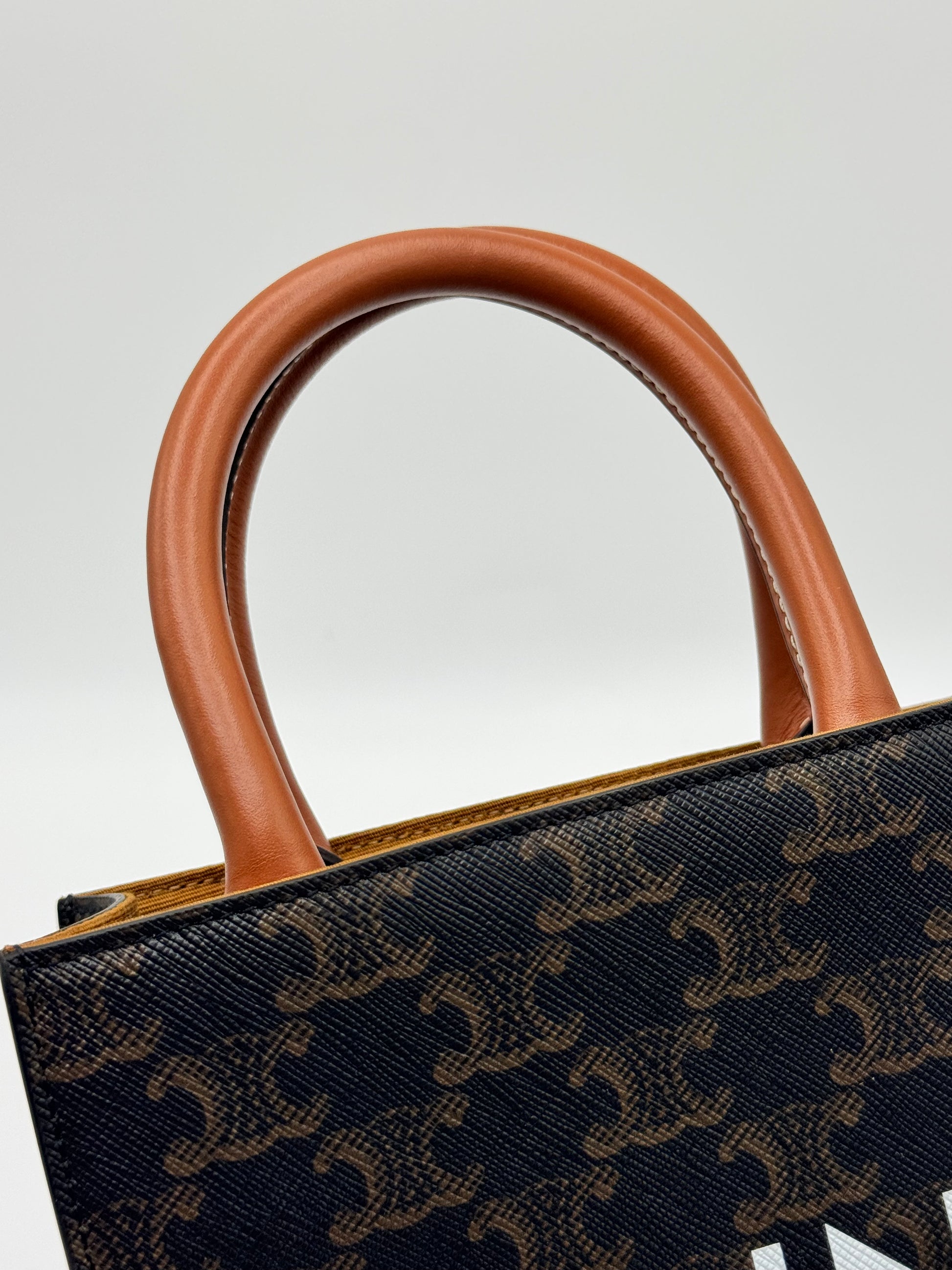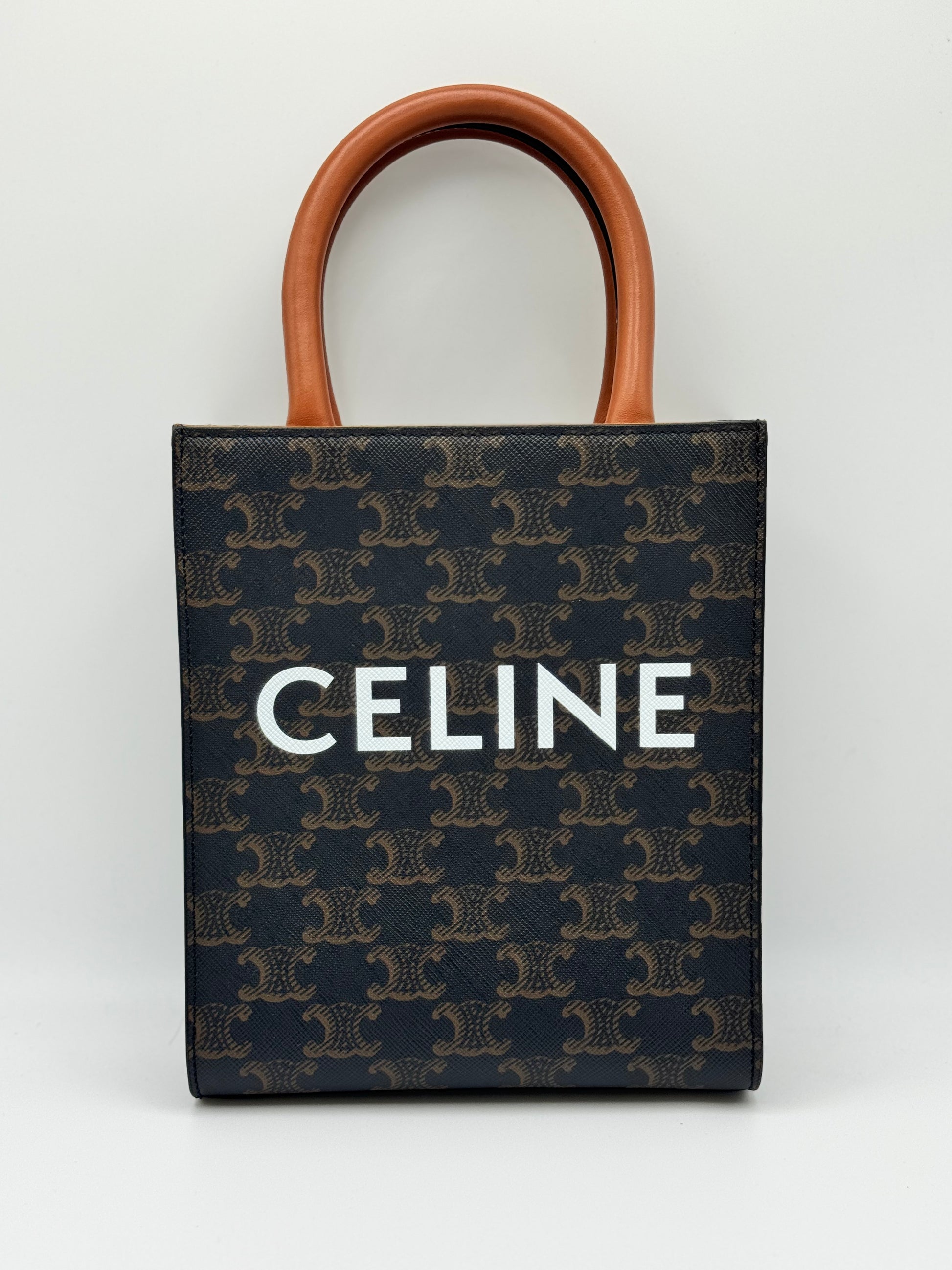 Celine Triomphe Canvas Calfskin Mini Vertical Cabas Tan