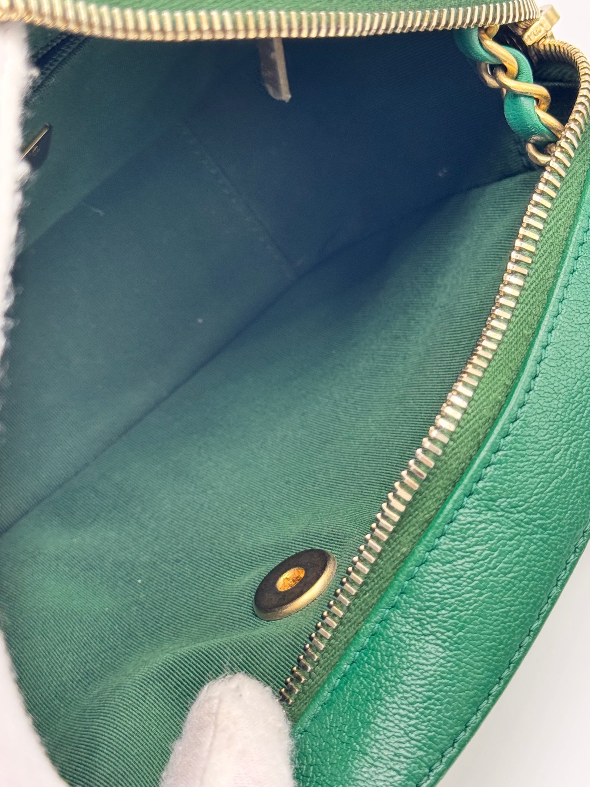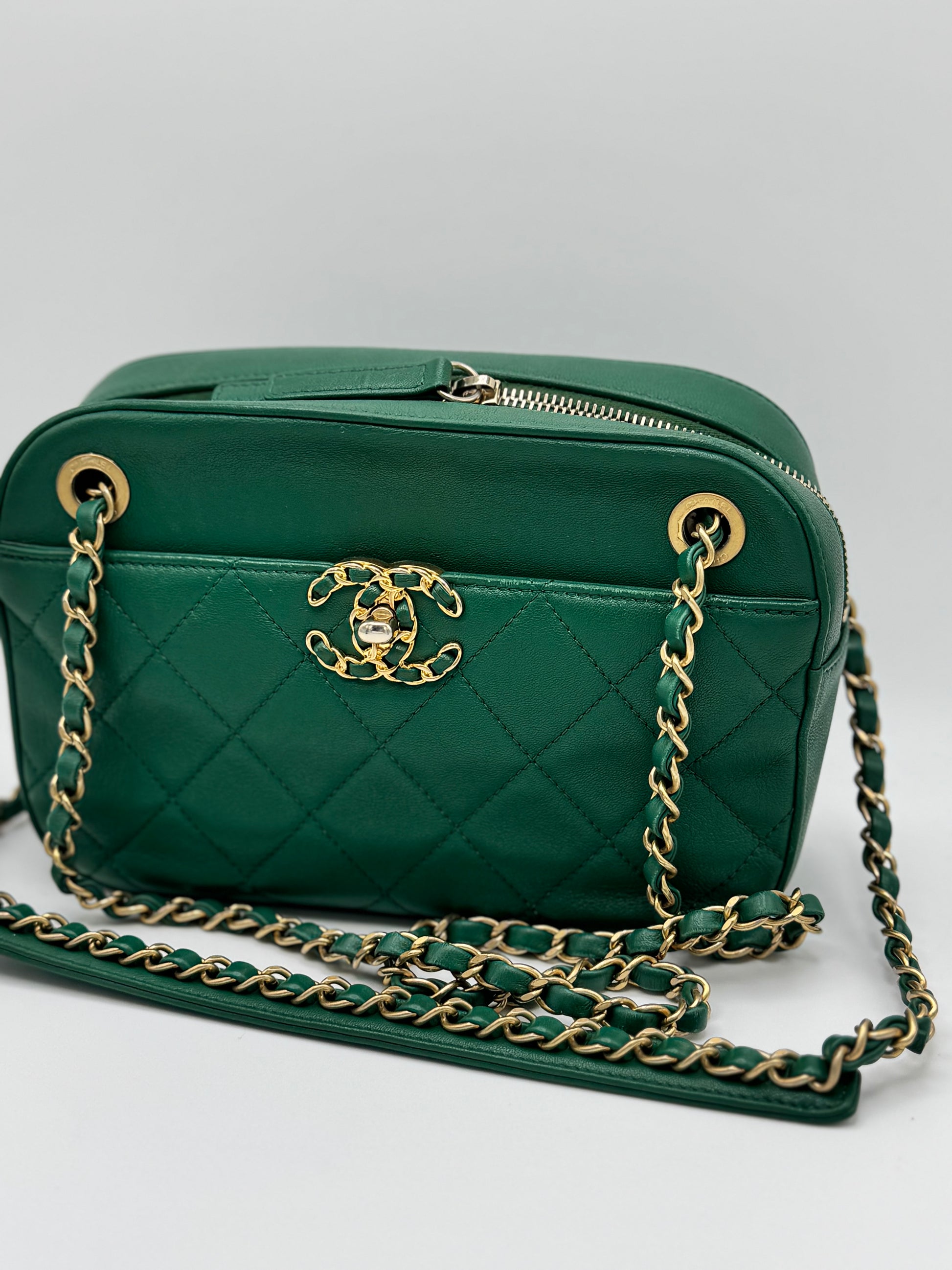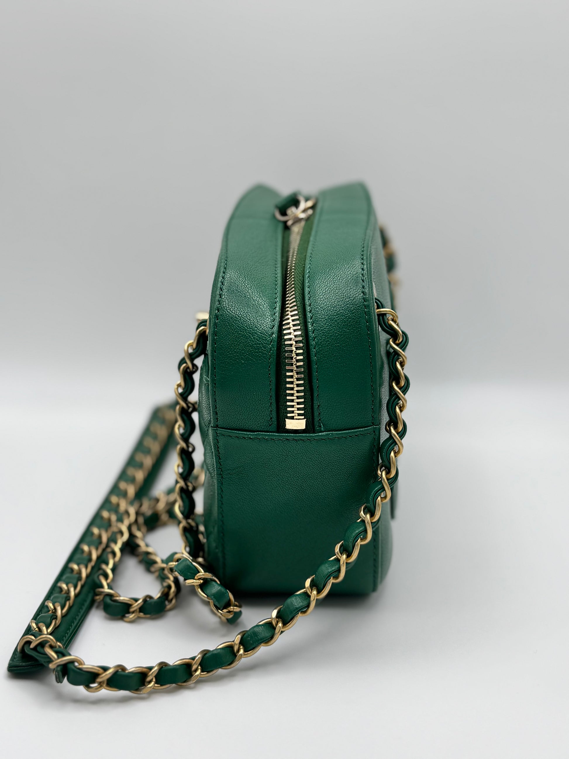Chanel Goatskin Quilted Chain Infinity Camera Case Green