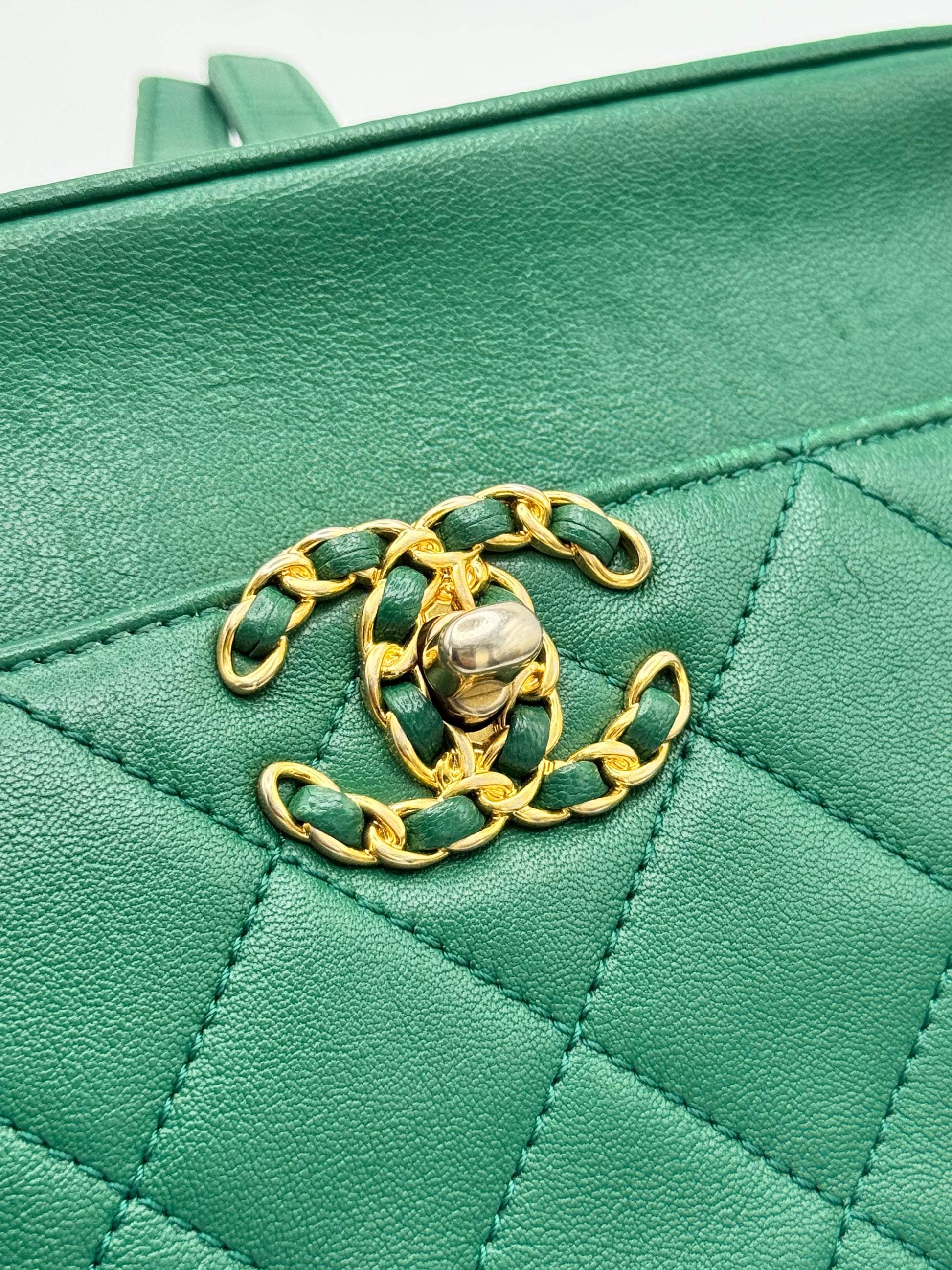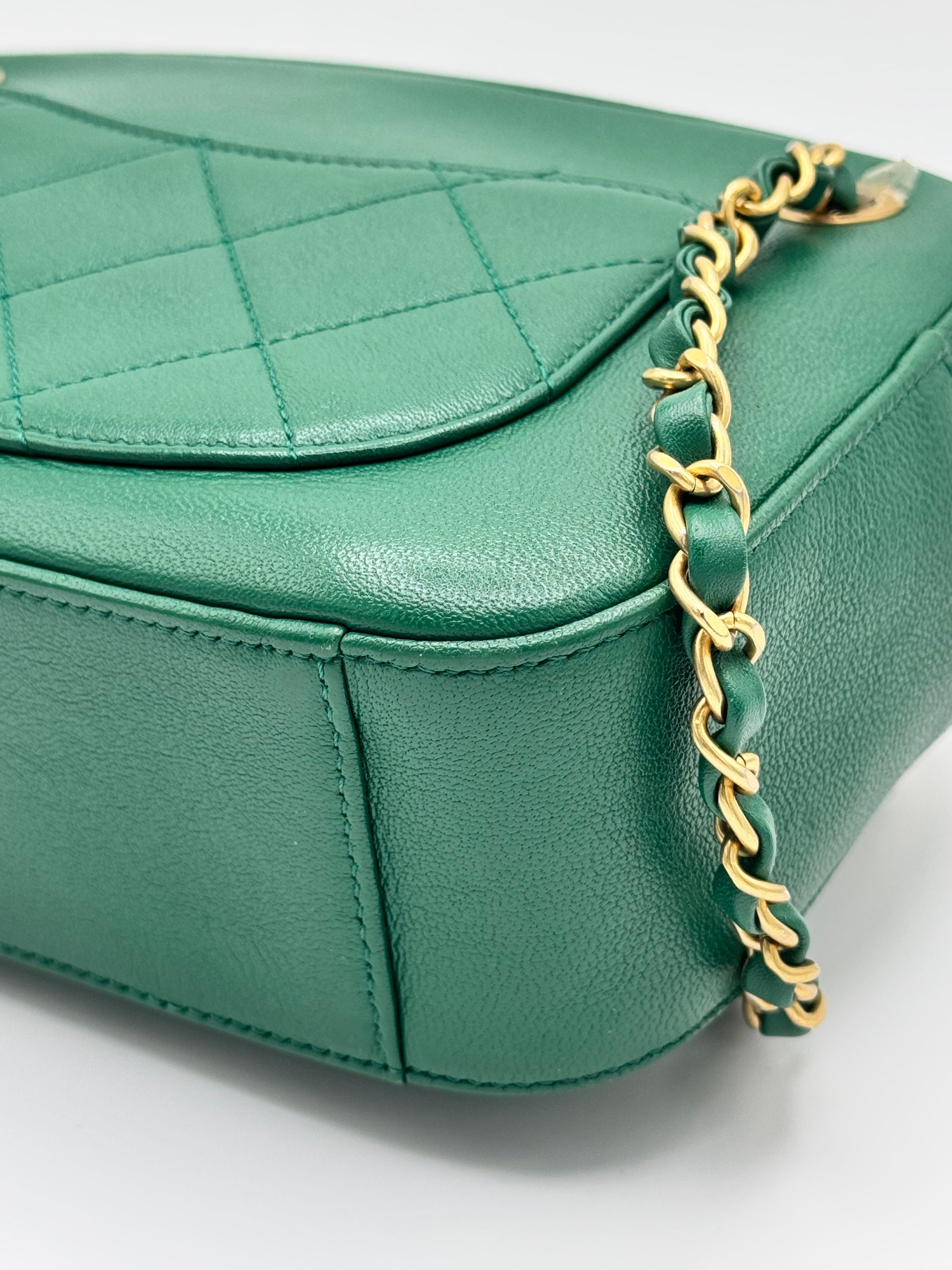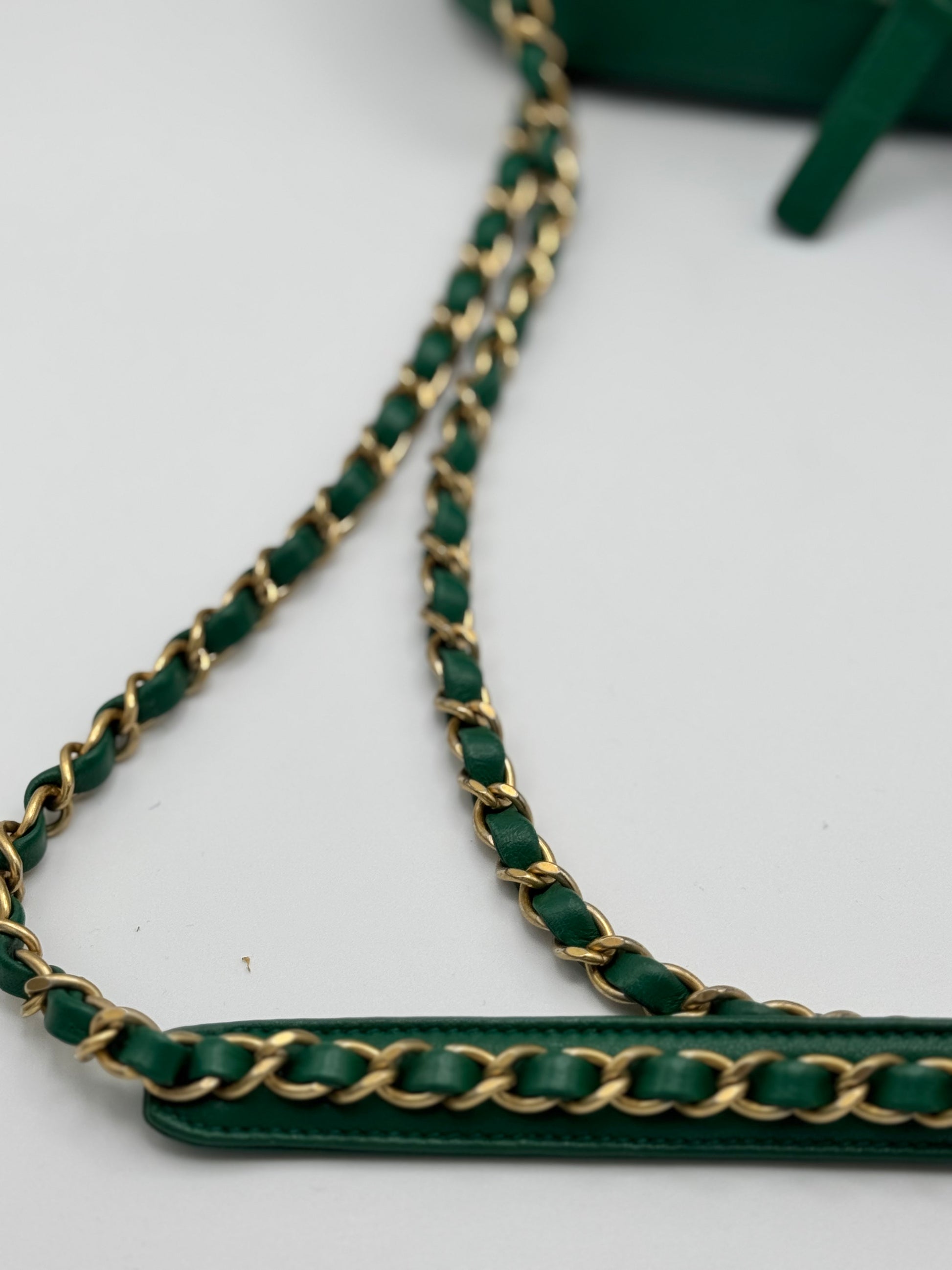 Chanel Goatskin Quilted Chain Infinity Camera Case Green
